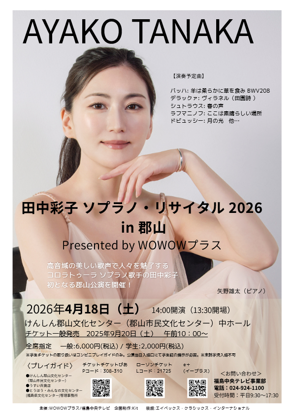 「田中彩子 ソプラノ・リサイタル2026 in 郡山」Presented by WOWOWプラス